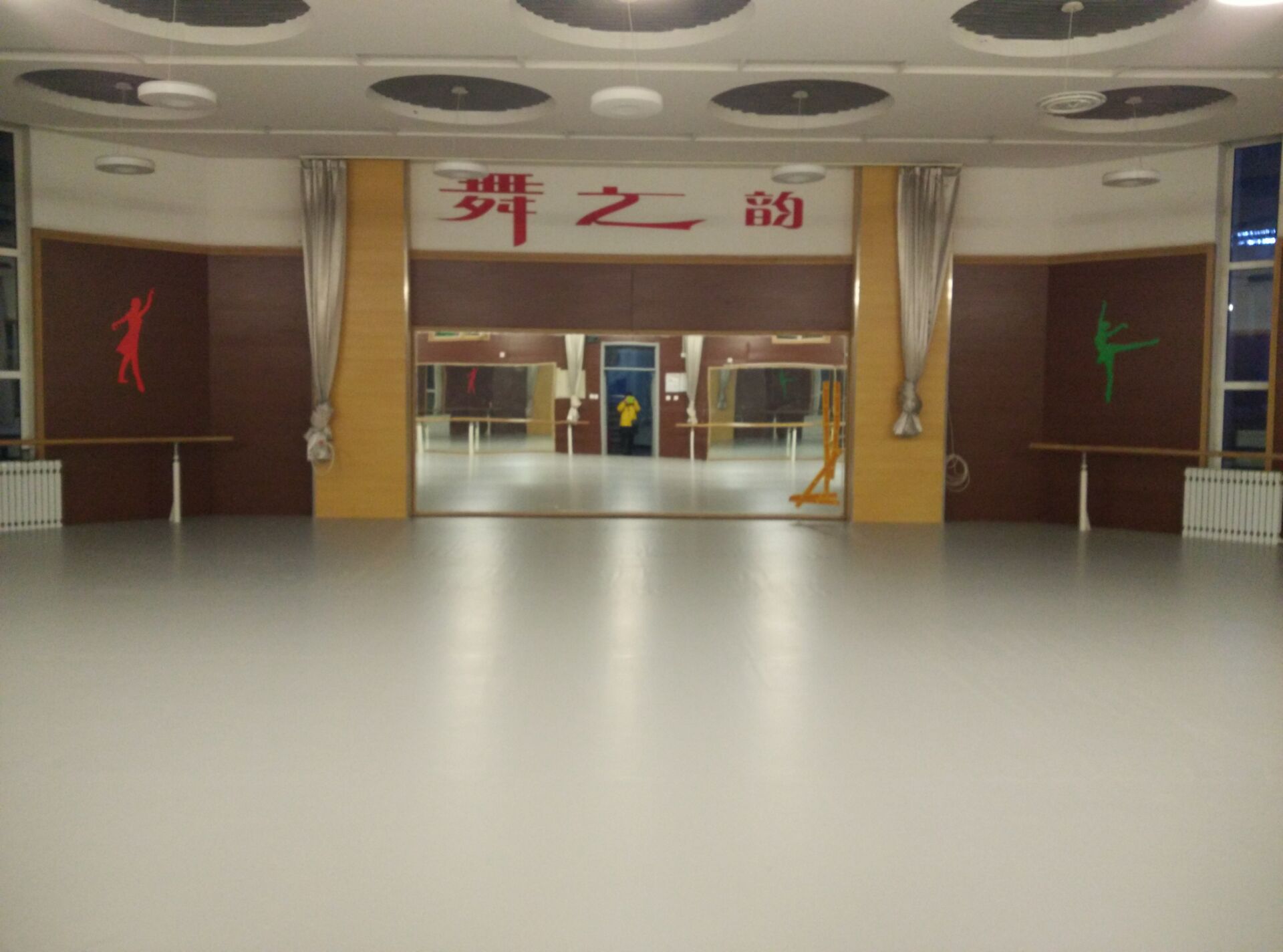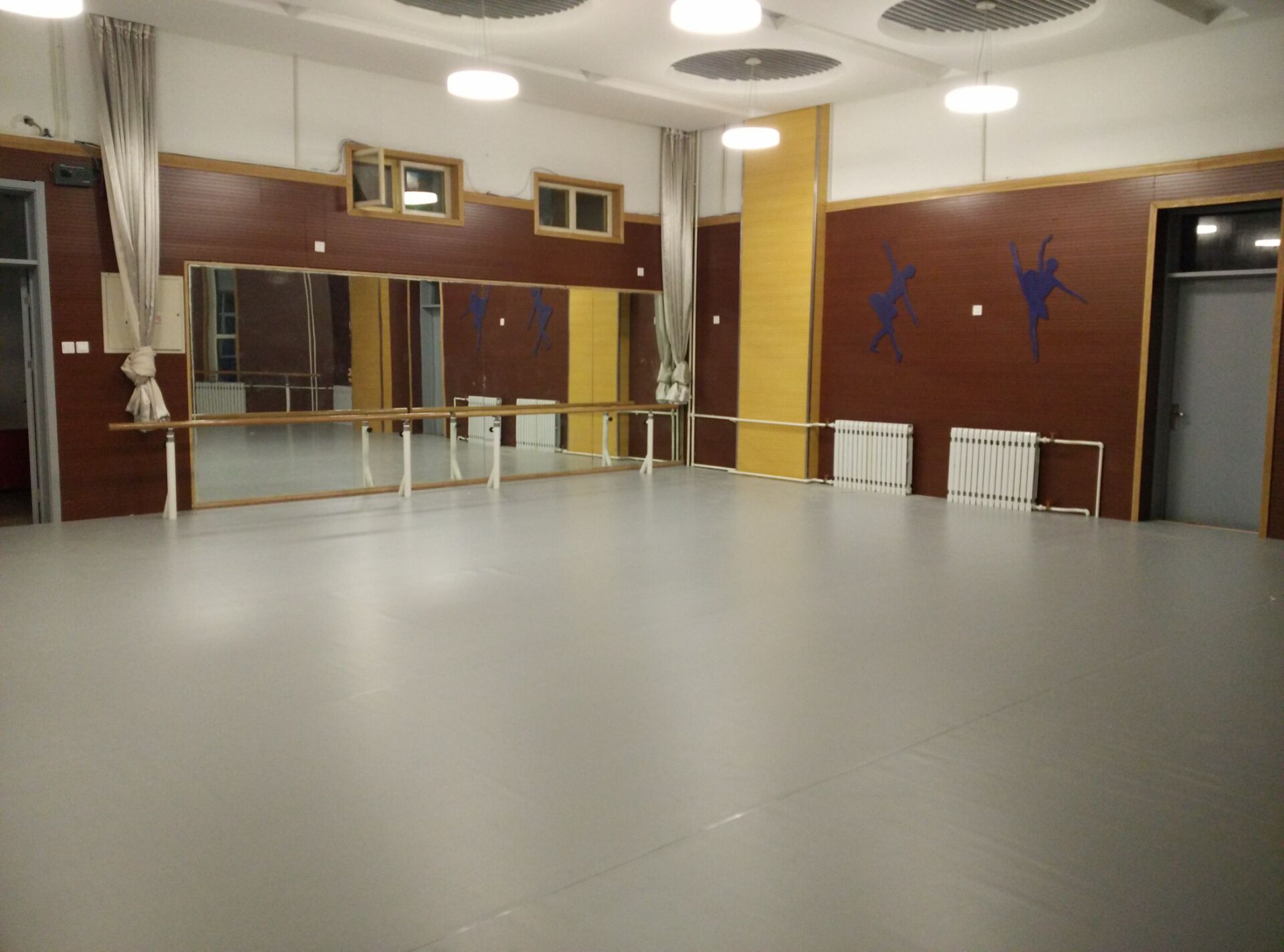 北京歐氏地板有限公司于2015年12月初承接北京大學附屬小學石景山學校舞蹈教室地膠和舞蹈木地板鋪設工程,該小學領導選擇的是單層龍骨結構楓木A級雙拼舞蹈木地板和小丑進口系列淺灰色5.0mm舞蹈地膠,鋪設面積186平米.于12月中旬鋪設完成,鋪設效果得到了該校領導的好評.